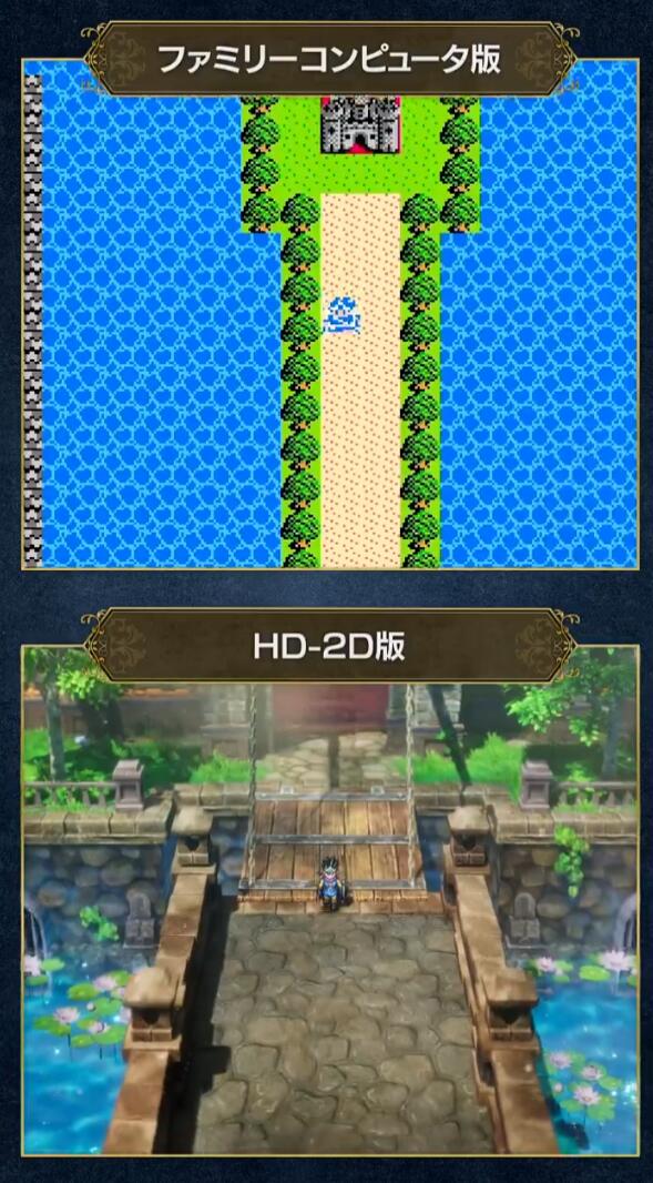 【《勇者斗恶龙3:HD-2D重制版》最新视觉图及新老对比画面公开】距离《勇者斗恶龙3:HD-2D重制版》的发售仅有一个月,SE今日公开了一张本作的最新视觉图。此外,官方还宣布,即日起会在5天内连续放出一些可展示此次HD-2D版进化之处的视频。今天所公布的是游戏FC原版与重制版在冒险的起点“阿拉罕”附近场景的对比,不知大家觉得效果如何呢?《勇者斗恶龙3:HD-2D重制版》将于11月14日登录NS/PS5/Xbox Series/PC,作为洛特三部曲的《1&2重制版》预计会在明年推出。