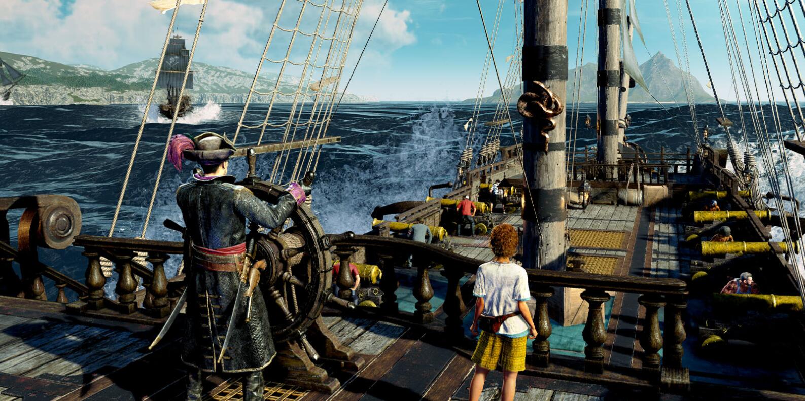 【“海贼王我当定了”《人中之龙8外传》海战情报更新】世嘉近日公开了《人中之龙8外传:夏威夷海盗》中有关海战的新情报。本作中,玩家可与真岛的“吾朗海盗团”一起,操纵“吾朗号”在辽阔的大海上开展冒险。大海上有着宝岛或灯塔等各种各样的地点,也充斥着大量危险的敌人,船只之间还有可能发生“海战”。开战时玩家可使用高超的掌舵技巧躲避敌人的炮击,向着敌人的要害开炮!最后与同伴们一起登上虚弱的敌船,用近身战斗来决一胜负。