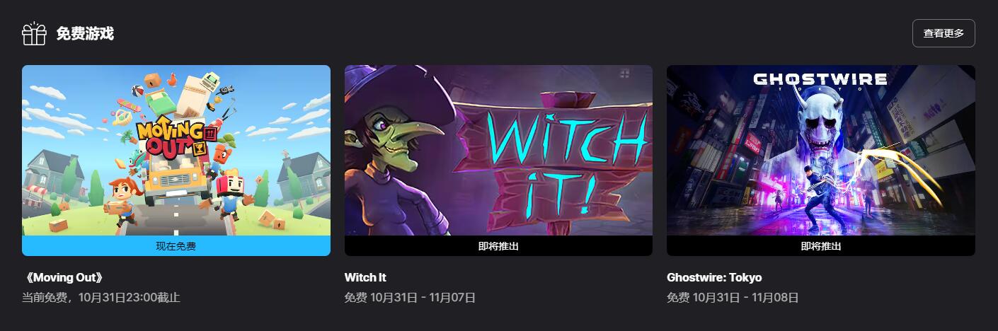 【Epic喜+1】物理模拟搬家游戏《胡闹搬家》现已可在Epic商店中免费领取,领取后永久入库,截止时间为10月31日23:00。下周免费游戏为《女巫来了》(Witch It)和《幽灵线:东京》。