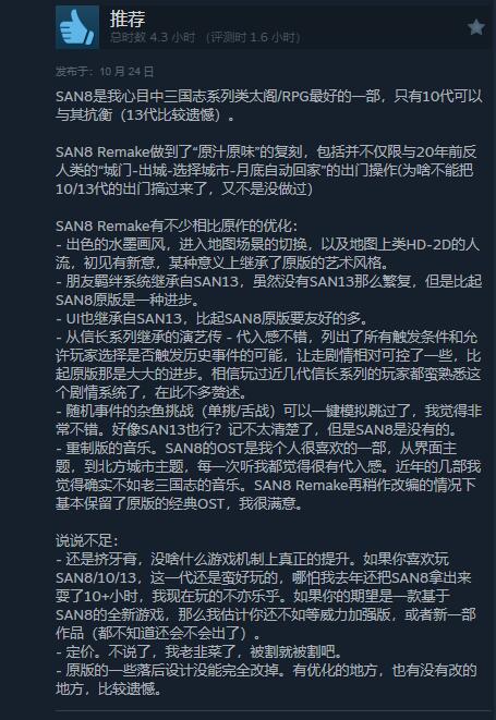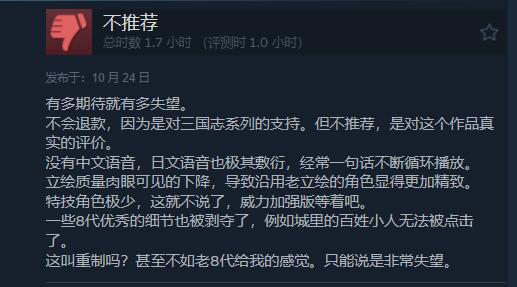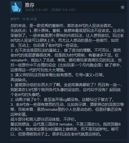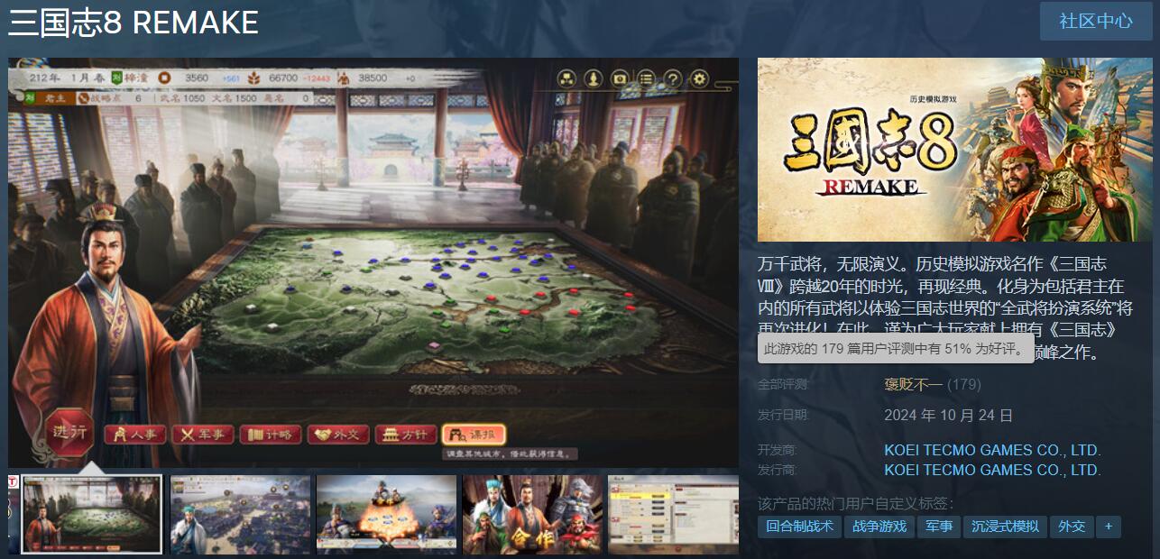 《三国志8:重制版》Steam上玩家评价“褒贬不一”