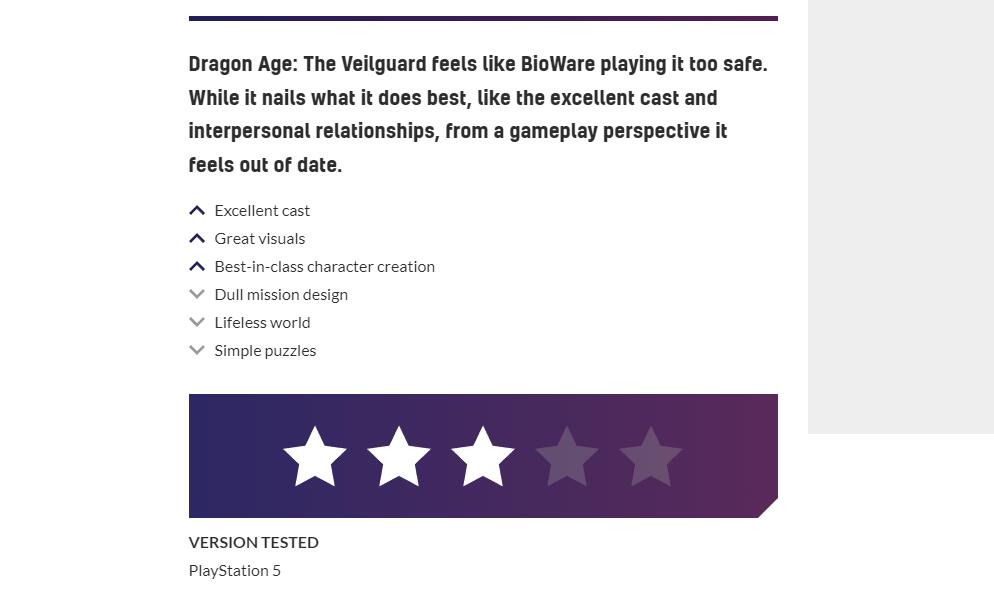 GamesRadar:本作吸取了《质量效应》的经验,整体来说是一款内容丰富的RPG作品。