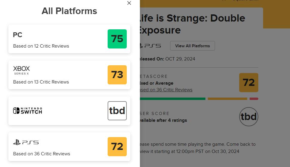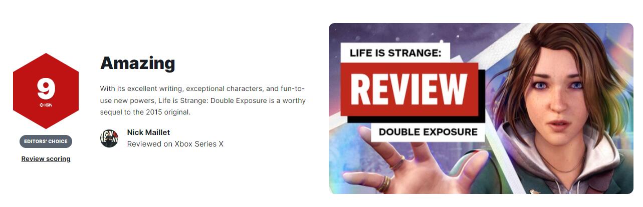 《奇异人生:双重曝光》MC均分72,获IGN 9分评价