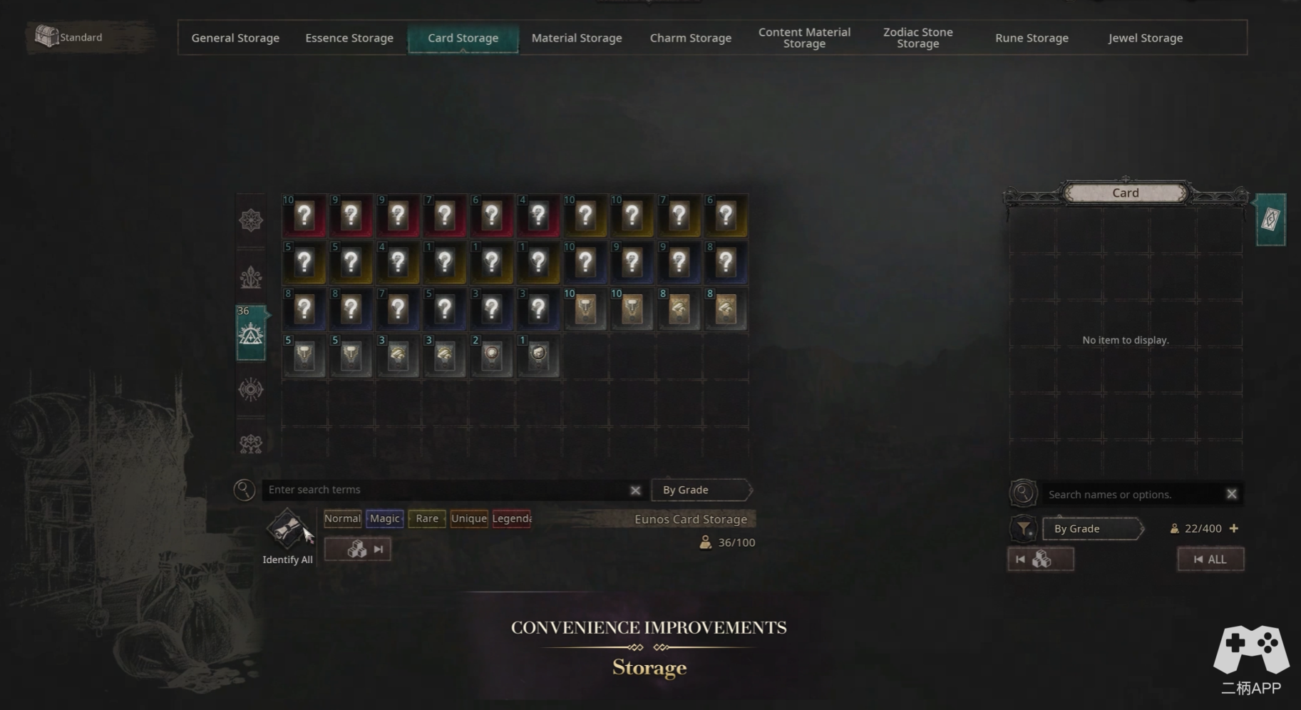 为丰富玩家游戏体验,本次更新围绕“便利性"做进一步优化升级。游戏新增内置指南书,可搜索关键词获得教程。优化仓库操作系统,可以一键鉴定仓库里的所有卡片,也可以按照品质一键取出。背包筛选添加词条过滤功能,便于玩家根据所需词条筛选保留道具。
