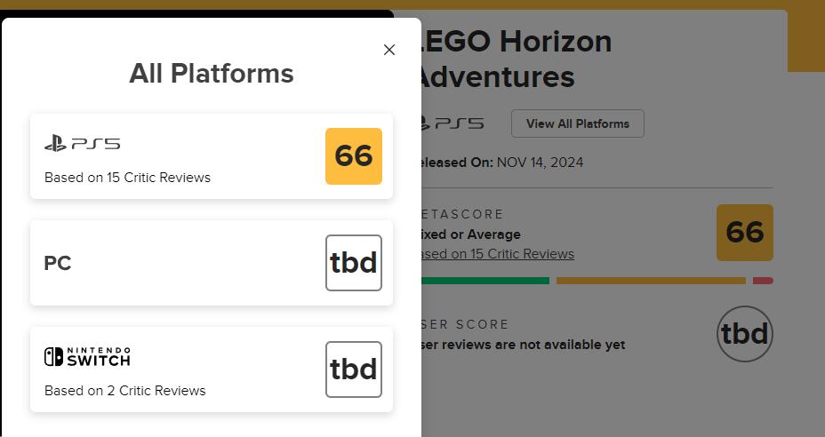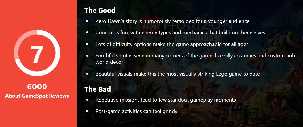 《乐高地平线大冒险》MC均分66,获IGN和GS双7分评价