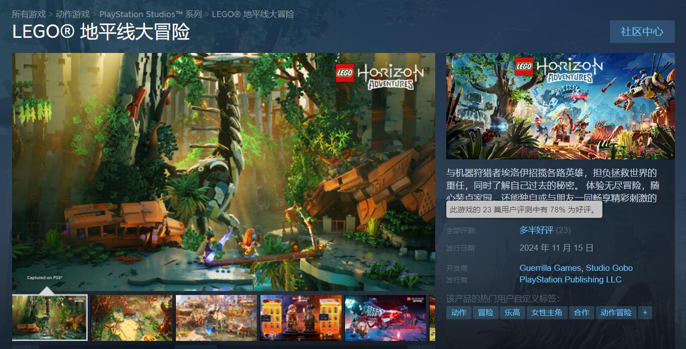 《乐高地平线大冒险》Steam首日峰值不及《星鸣特攻》
