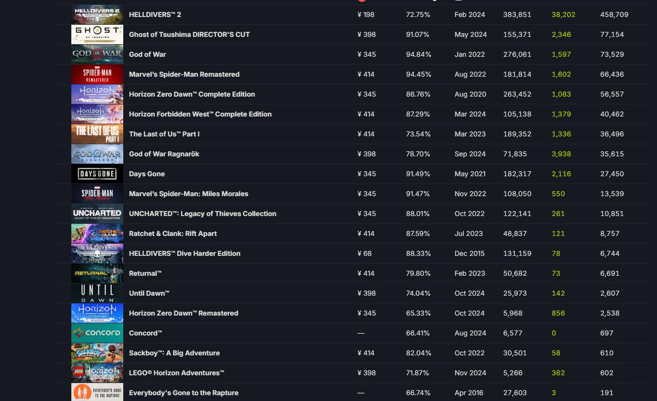 【《乐高地平线大冒险》Steam首日峰值不及《星鸣特攻》】《乐高地平线大冒险》已于今日在Steam上推出。目前该平台上的玩家评论数较少,游戏在23条评测中好评率为78%。根据SteamDB所提供的数据显示,本作上线首日玩家在线峰值数仅有602人。这个成绩在PS第一方阵容中属于垫底的存在,低于峰值610人的《麻布仔大冒险》和697人的《星鸣特攻》。《乐高地平线大冒险》Steam标准版售价398元, 游戏支持中文,游玩需要PSN账户。