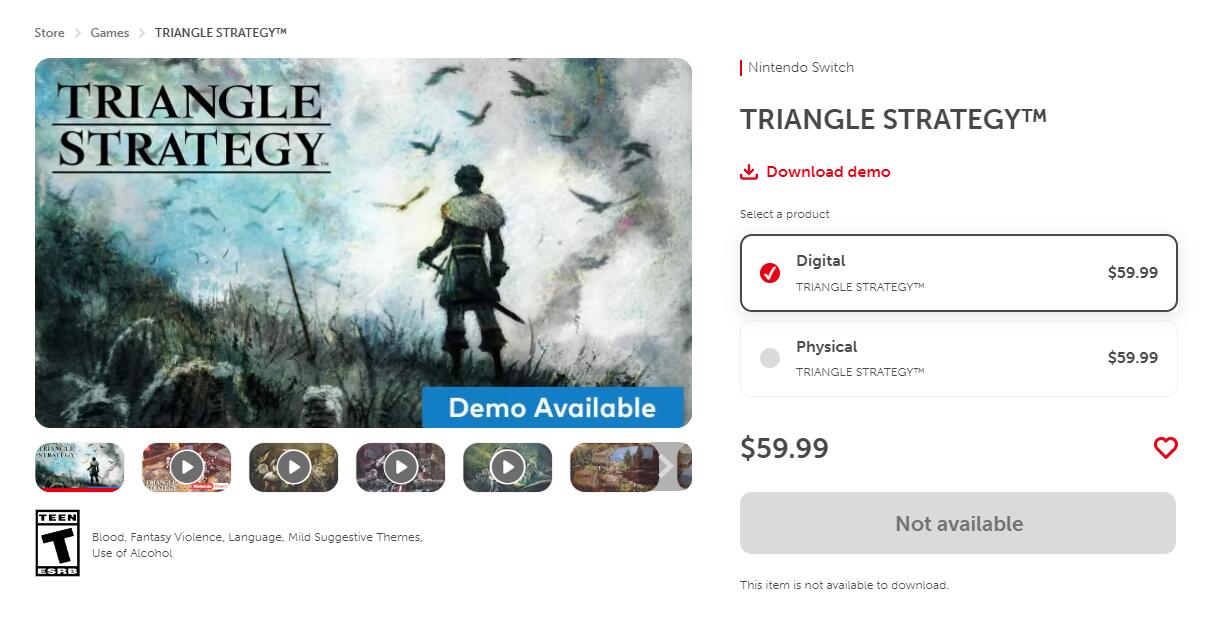 【《三角战略》暂时从任天堂商店下架】HD-2D战棋游戏《三角战略》目前暂时从任天堂(部分地区)商店中下架。今日SE官方发文表示:“已购买本作的玩家仍可以下载游戏。现正在努力解决此问题,待可以购买时会再进行更新。” 值得一提的是,此前《八方旅人》也出现过类似的情况。当游戏回归时,发行商从任天堂更改成了SE,并且登录了其他平台。现阶段还尚不确定此次情况是否与之前相同,《三角战略》目前已登录平台为NS和Steam。