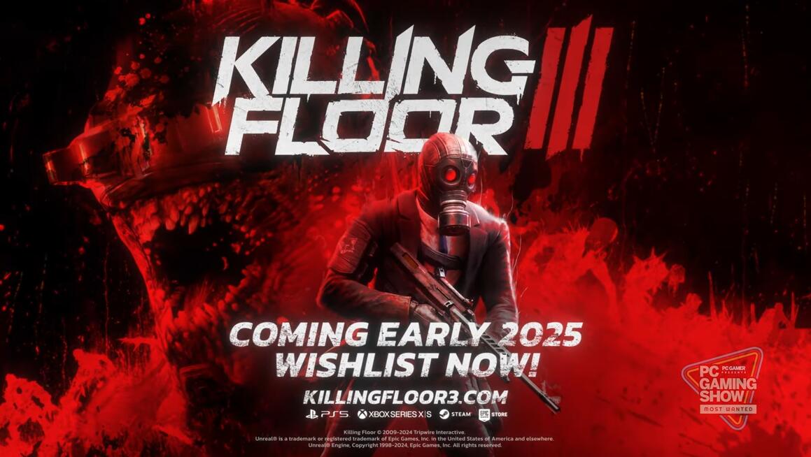 【《杀戮空间3》将于2025年初发售】在今日的PC Gaming Show中,《杀戮空间3》被选为明年最受期待的游戏之一。开发/发行商Tripwire Interactive也在活动上宣布,本作将于2025年初发售。《杀戮空间3》是传奇动作恐怖系列《杀戮空间》的续作。在这款紧张刺激的第一人称射击游戏中,玩家将作为Nightfall的一名专家,与最多五名队友一起抵抗zeds、赚取钱币、解锁技能,并建立终极武器库。《杀戮空间3》登录平台为Steam、Epic、PS5、Xbox One、Xbox Series、