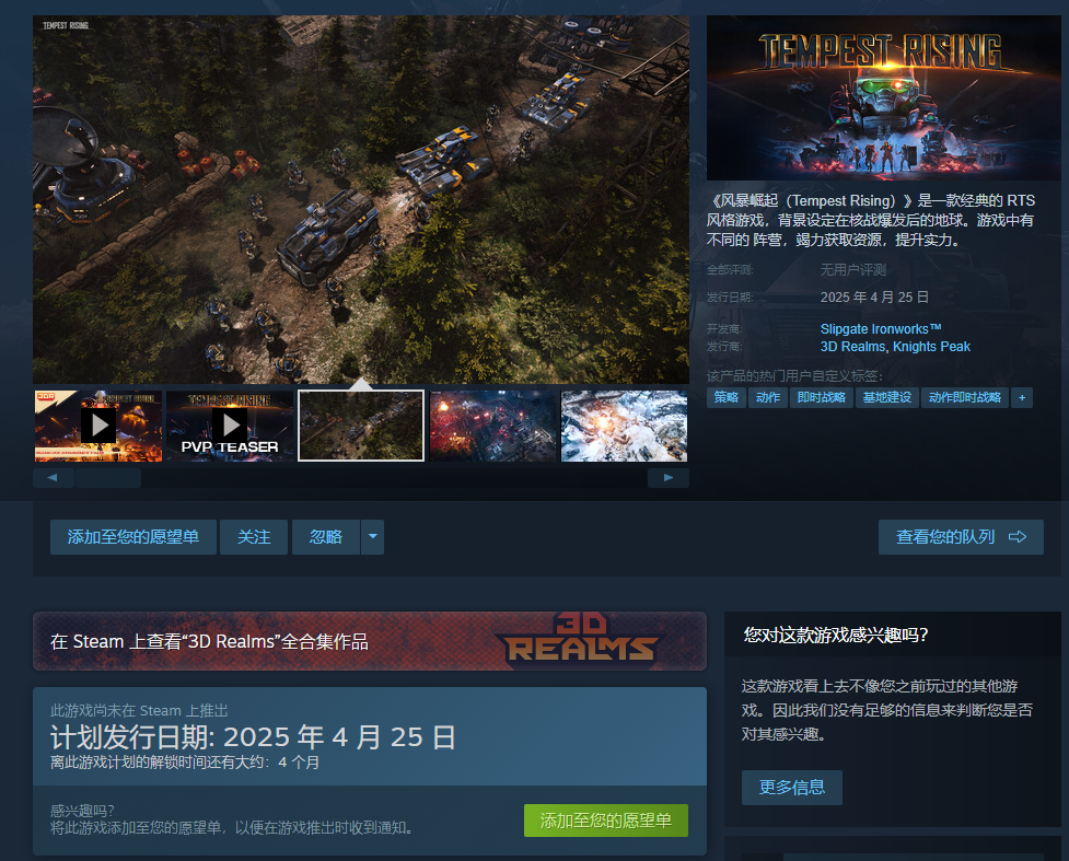 即时战略游戏《风暴崛起》发布定档预告,2025年4月25日发售