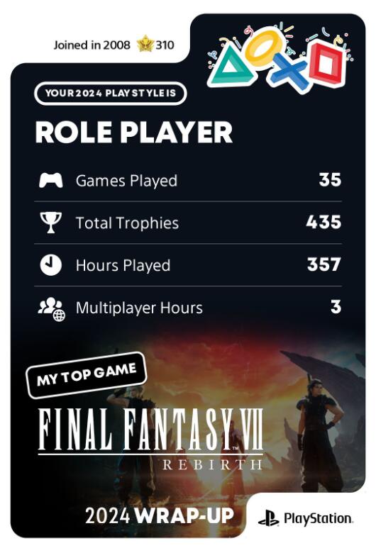 【2024 PlayStation年度总结现已上线】在年末将至之际,SIE今日开放了“你的PlayStation 2024”年度总结页面。今年是PlayStation的30周年,故此次活动中也融入了一些复古元素。即日起至2025年1月10日,PS4/PS5用户可在官方网站上进行登录并查看看过去一年里最常玩的游戏、游戏详情、游戏风格等内容。