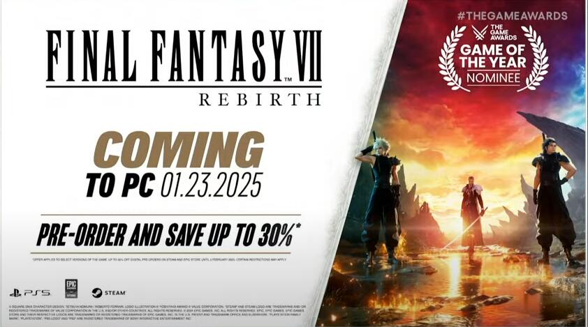 #TGA2024#《最终幻想7:重生》2025年1月23日登录PC