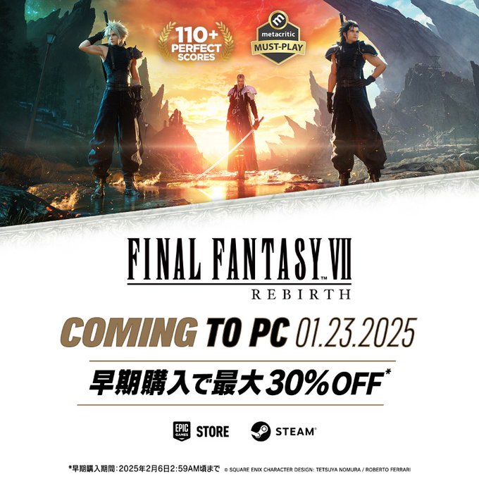 【《最终幻想7:重生》PC配置要求公布】SE今日宣布,《最终幻想7:重生》将于2025年1月23日登录PC平台。目前游戏已上架Steam和Epic,预购可享7折优惠,其中普通版折后价312.2元。游戏预购特典为召唤魔晶石“莫古力团”、防具“神罗手镯贰型”以及防具“米德加手镯MK-II”。
