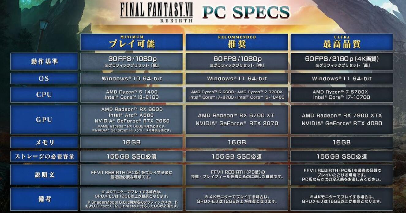 《最终幻想7:重生》PC配置要求公布,首发可享7折优惠