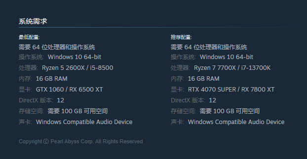 【《红色沙漠》PC配置公布:最低仅需GTX 1060】开放时间动作冒险游戏《红色沙漠》Steam页面已经上线,并且公布了本作的PC配置要求: