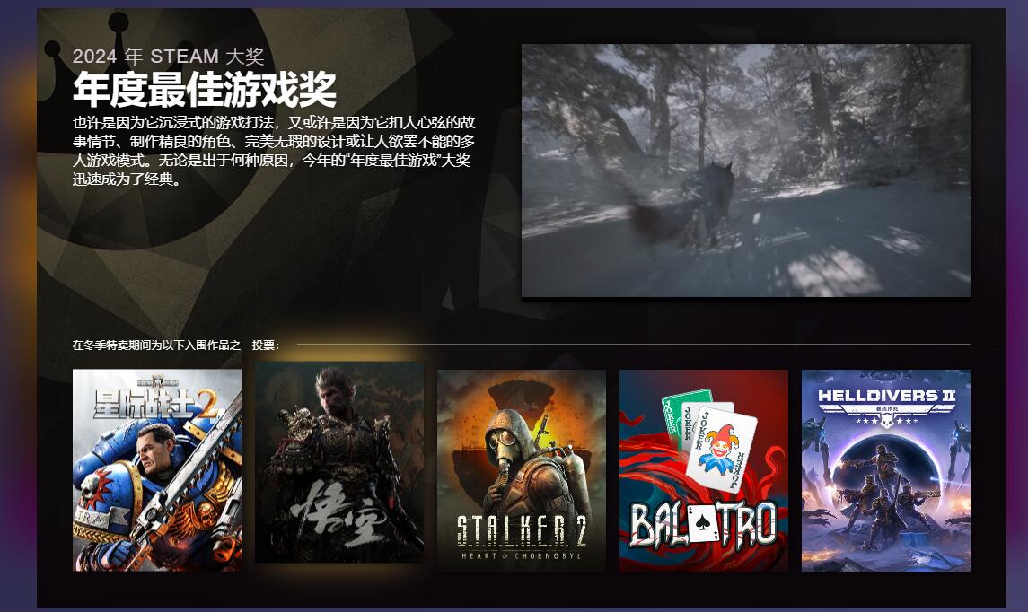 《黑神话》获得3项提名!2024年Steam大奖入围名单出炉
