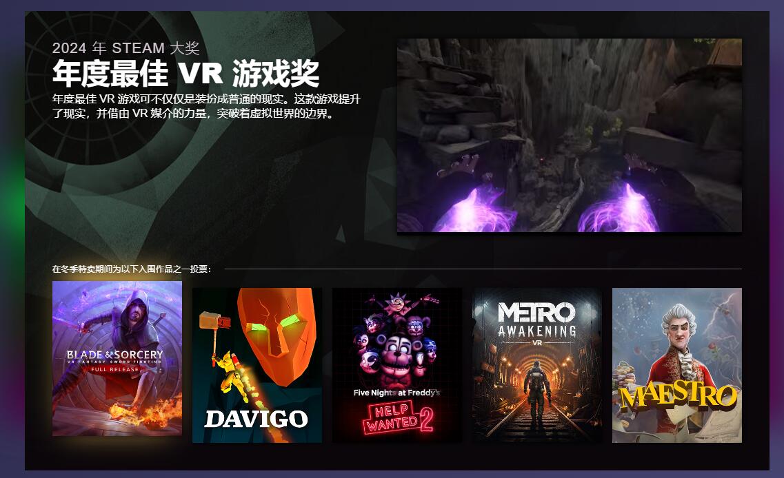 《Blade and Sorcery》《DAVIGO:VR vs. PC》《玩具熊的五夜后宫VR》《地铁:觉醒》《Maestro》
