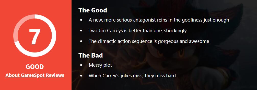 【电影《刺猬索尼克4》将于2027年上映】Variety消息,派拉蒙影业已经批准了电影《刺猬索尼克4》。据称,该影片预计2027年春季上映,目前具体细节信息未知。《刺猬索尼克3》将于2025年1月10日在内地上映,本片目前烂番茄指数87%。不过游戏媒体IGN只给其打出了6分,GameSpot则给出7分评价。