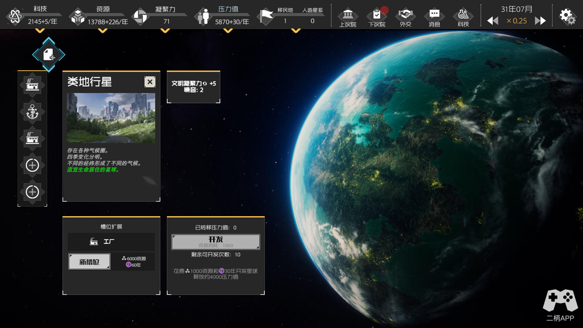 《深暗森林》灵感源自《三体》中“黑暗森林”法则,游戏一改传统RTS操作部队的方式,专注于信息收集、分析与战略抉择。玩家需合理分配经济与科研资源,建设军事基地与太空港,确保文明生存。在紧张的战略对抗中,玩家既要规划宏观方向,又需灵活应对局势变化,以智慧平衡多方需求,为文明争得一线生机。这场太空中的生存较量,你准备好接受挑战了吗?