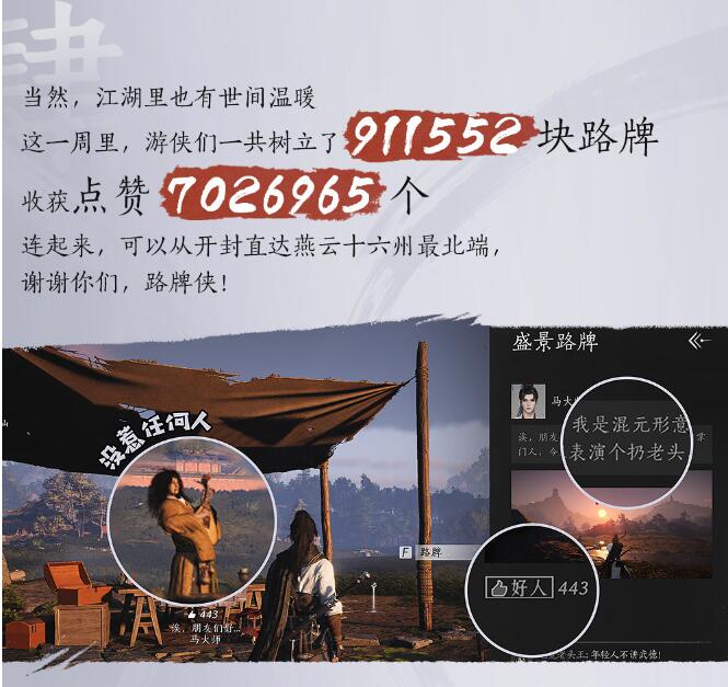 4、游侠们共树立了911552块路牌,收获点赞7026965个。