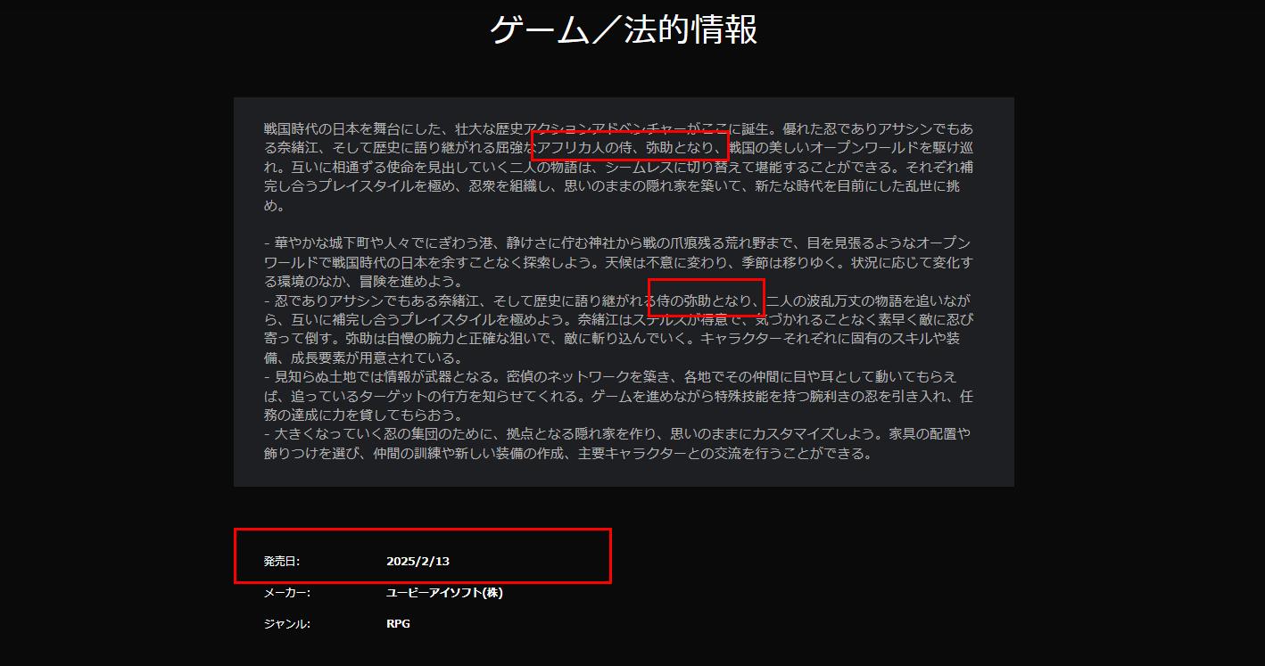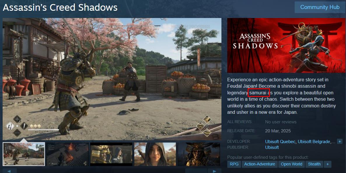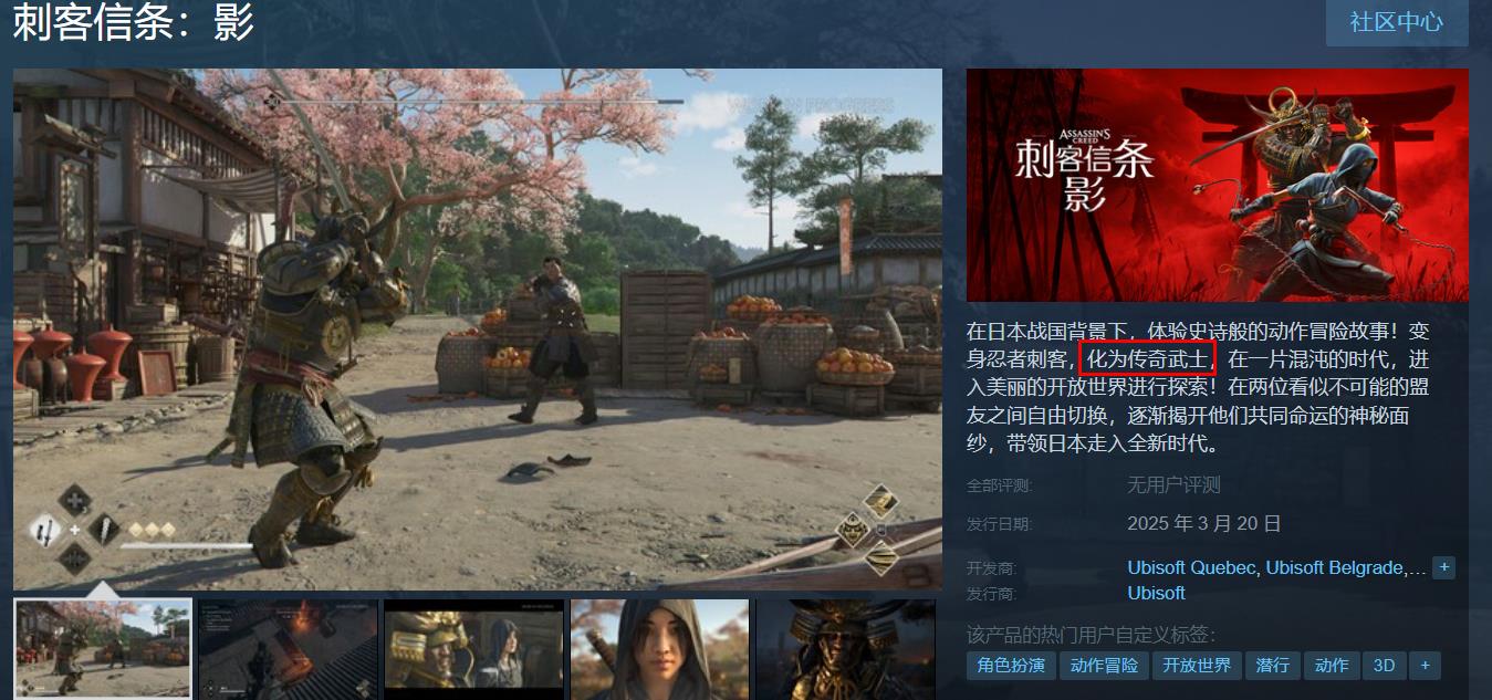 《刺客信条:影》Steam日文页面中“武士”一词已被删除