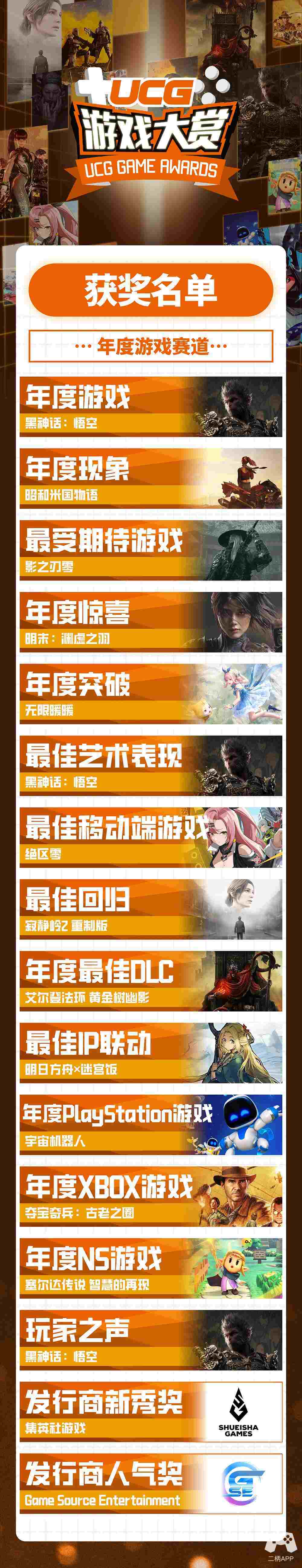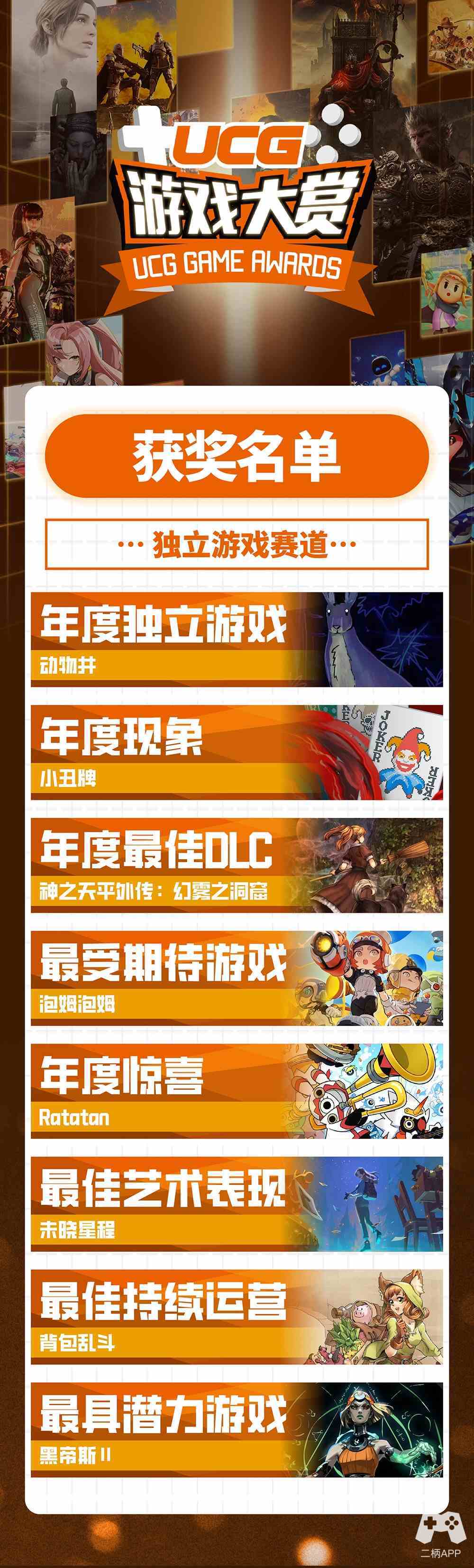 UCG游戏大赏2024颁奖典礼现已圆满结束!总共24个奖项的最终获奖者在典礼中揭晓!