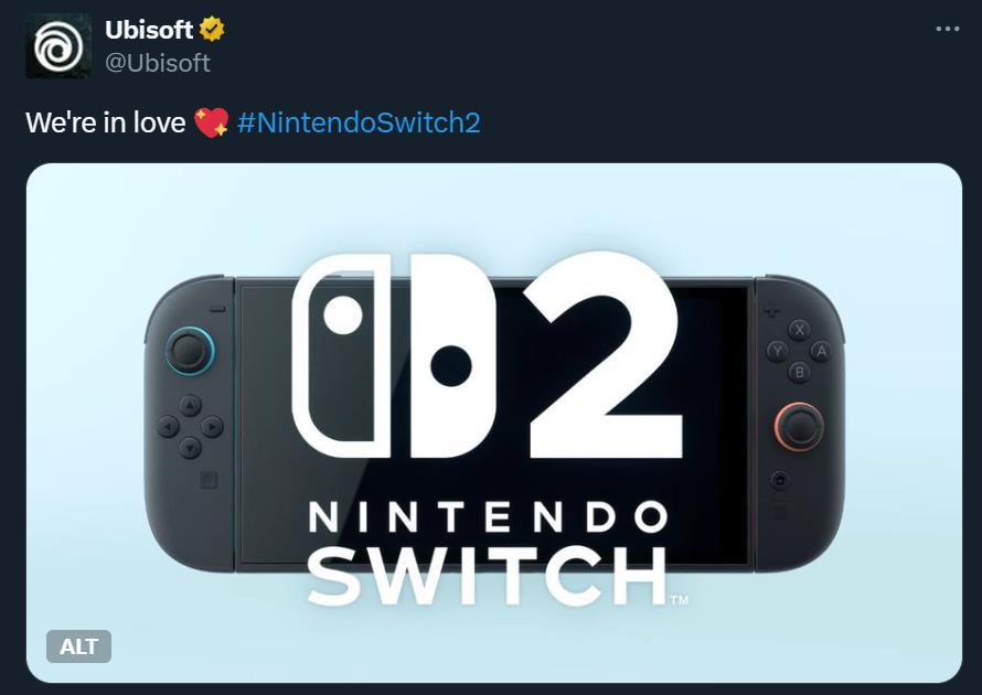 【育碧或在暗示旗下作品将登录NS2】在昨晚任天堂公布了新机后,育碧官媒发表了一张Switch2的图并在配文中写道:“我们相爱着(We're in love)。”这或许在暗示旗下作品将要登录NS2。此次准确爆料了NS2发布时间的NateTheHate之前曾透露过,育碧在为NS2开发至少6款游戏。其中包括《刺客信条:幻景》等移植作和最新作《刺客信条:影》。