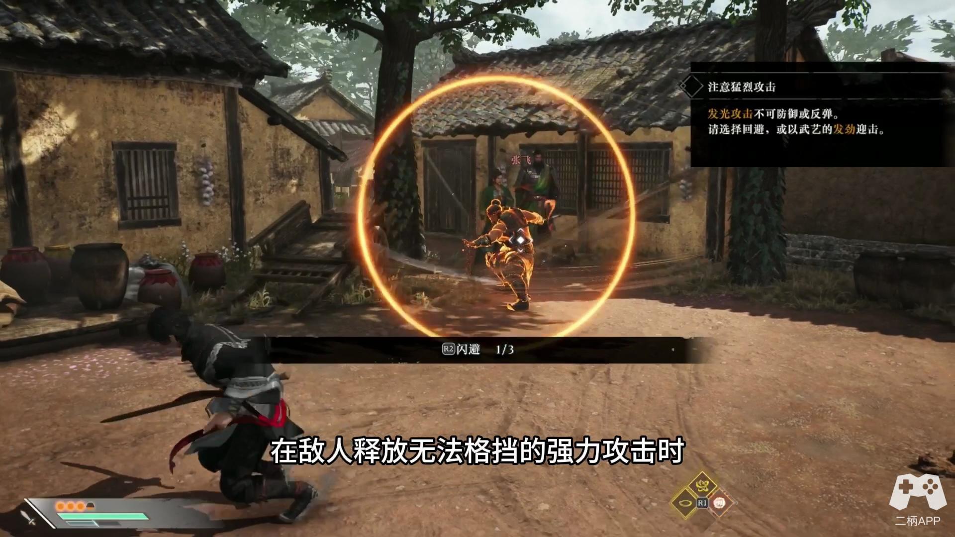 看破与反击:在敌人释放无法格挡的强力攻击时,玩家需要通过闪避来进行规避,而如果在临接招前按下闪避键,则会触发看破,为玩家积攒斗气槽,以发动下文提及的武艺,进而吹响反击的号角。