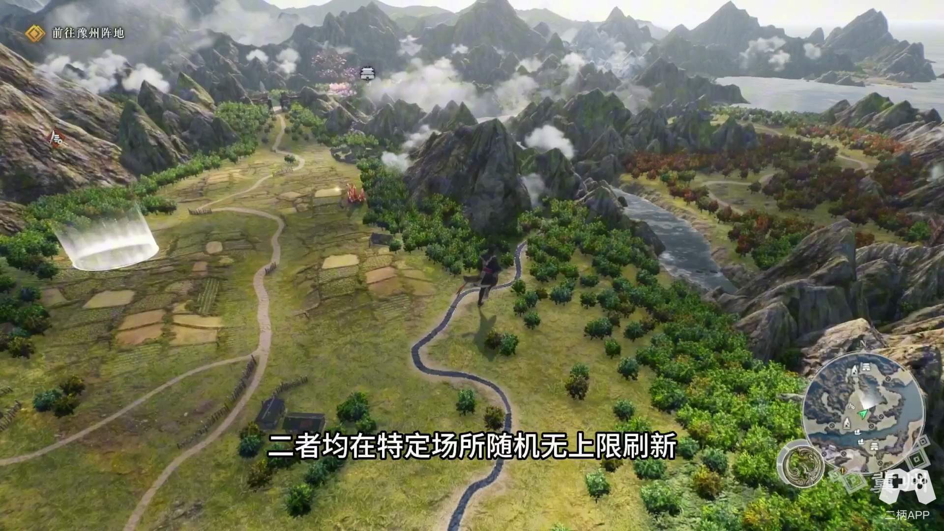 战场外探索则是对《真三国无双8》滑铁卢一般的开放世界进行了改进与修正,《起源》里的平面版开放世界更适合分章节的推进结构。玩家可以在战斗之间自由探索世界地图,寻找分布在世界的隐藏资源和任务。地图上分布的资源主要有用来锻造宝玉的辉石和换取物品的古钱币,二者均在特定场所随机无上限刷新,因此不会给人带来寻找的烦恼。