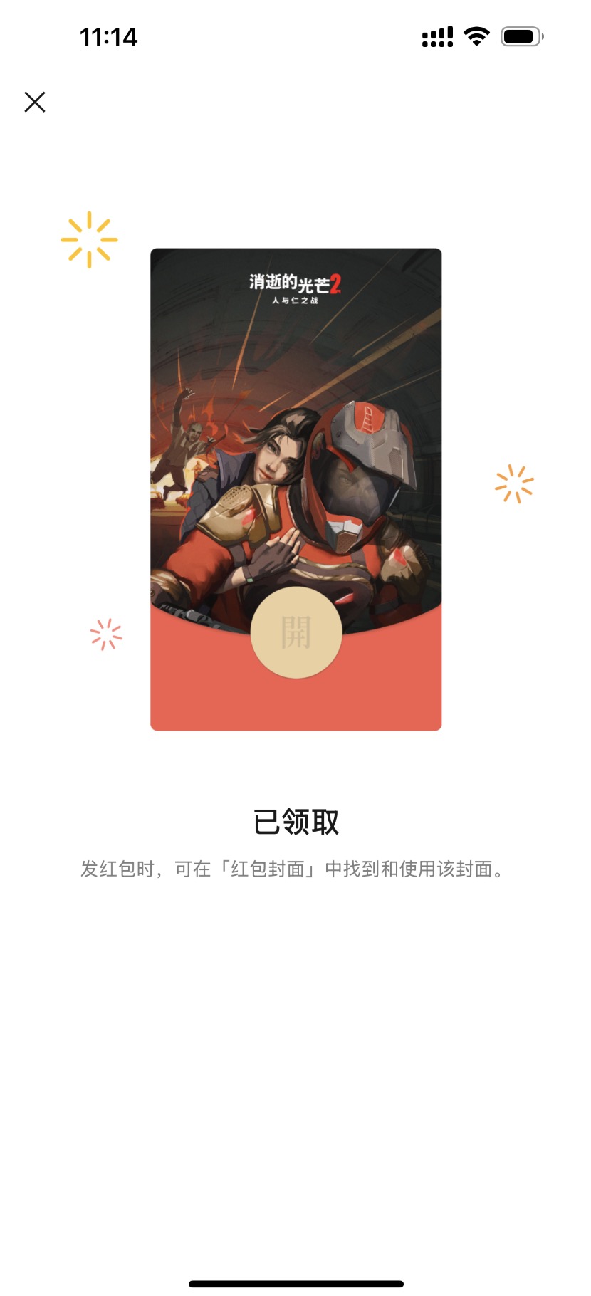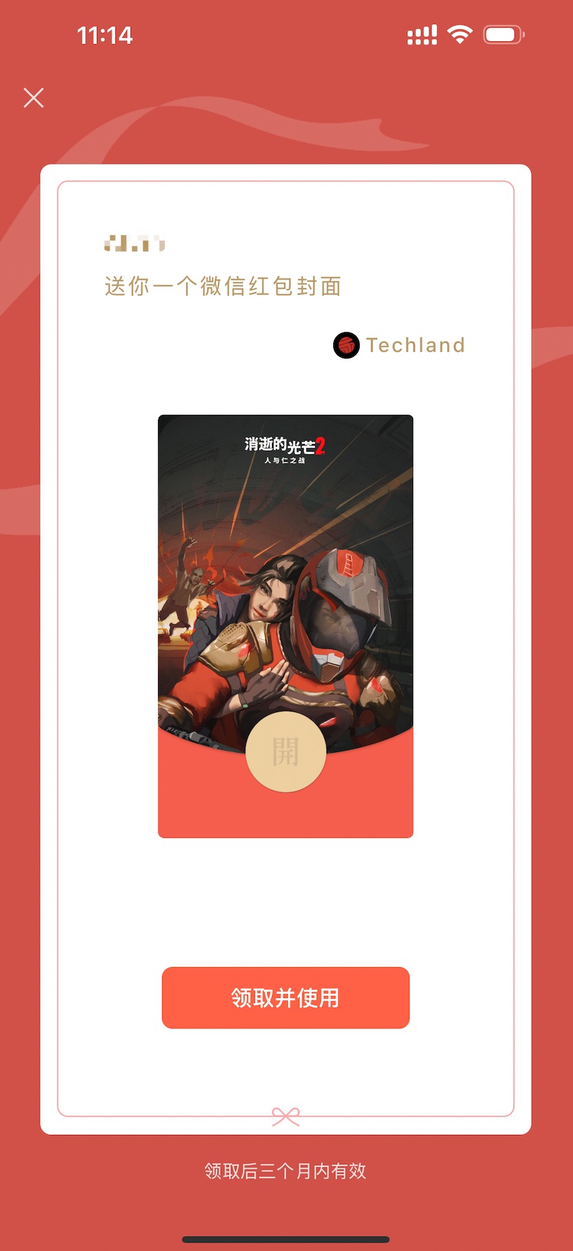 《消逝的光芒2:人与仁之战》给各位柄友拜年了,Techland官方特别为柄友们送上微信红包封面,祝大家蛇年大吉,新春快乐!回复留下你对自己或柄友的新年祝福,我们将抽取200名玩家获得红包封面激活码,1月27日下午6点自动开奖! *发红包页面进入“红包封面”详情页,点击右上角“领封面”,再点击右上角兑换输入序列号进行激活。