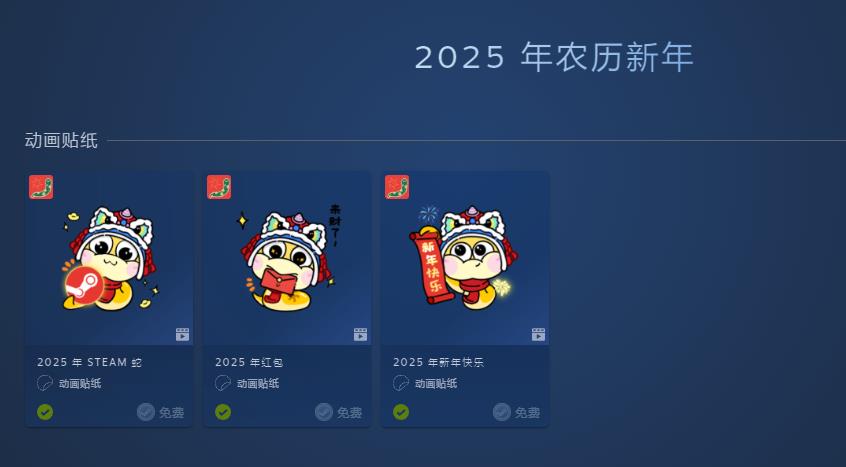 【Steam农历春节特卖现已开启】Steam农历春节特卖现已开启,活动截止日期到2月10日。期间除了有各种折扣游戏外,在点数商店里还可免费兑换三款动画贴纸。其中包括“2025年Steam蛇”“2025年红包”以及“2025年新年快乐”,喜欢的柄友不要错过。