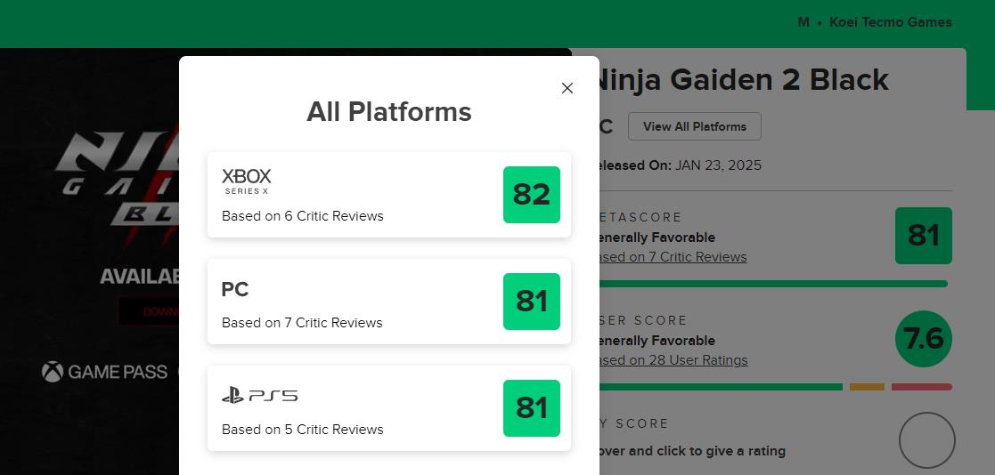 《忍者龙剑传2:黑之章》复刻版MC均分81,获IGN 8分评价