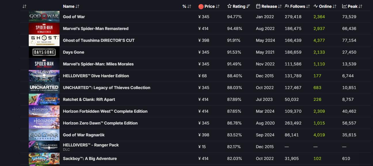 除去不算游戏的《战神诸神黄昏》原声带和《地狱潜兵》的技能包,本作目前的好评率在PS一众作品中处于垫底状态。昨日官方已宣布QA和开发团队正在积极调查和开发其他修补程序,以进一步提高稳定性并尽快解决错误。