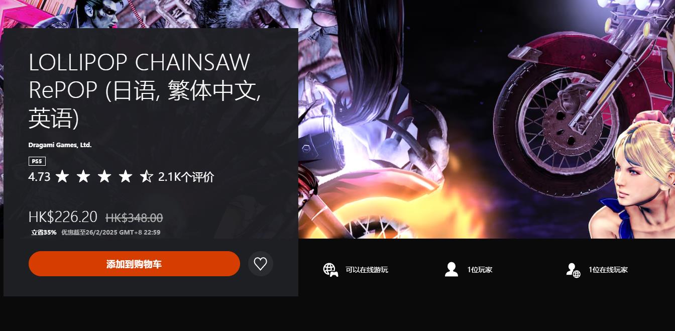 《电锯甜心:RePOP》226.2HKD(新史低)