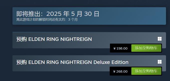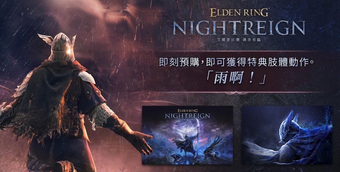 【《艾尔登法环:黑夜君临》预约开启,限定版提供“追踪者” 模型】预计于5月30日发售的《艾尔登法环:黑夜君临》现已开启预约。本作是一款以《艾尔登法环》为基础,经过全面翻新设计的协力型动作游戏。游戏预购特典为肢体动作“雨啊!”。除标准版外,本作还提供了豪华版可选,其中额外附带数字美术书&迷你原声带+追加下载内容(年内发布)。