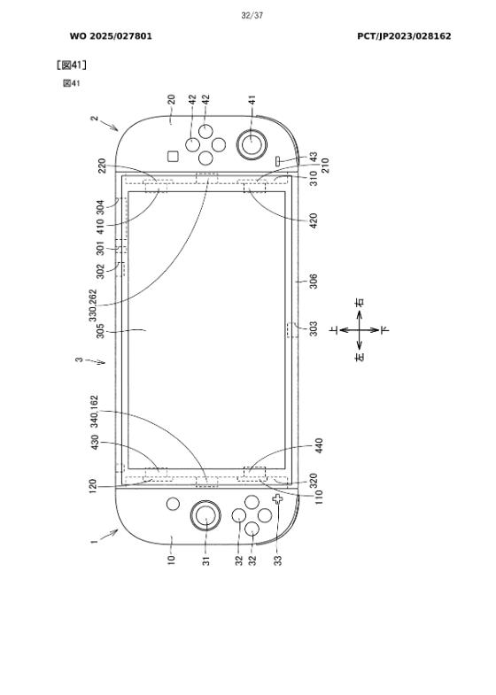 【任天堂专利显示NS2的Joy-Con或可反向安装】根据任天堂最新公开的专利文件显示,NS2的Joy-Con或将支持反向安装。从专利图中可以看到,一台正放的NS屏幕左侧为原本应该安装在右侧的+号Joy-Con,相对的右侧则为-号Joy-Con。对于磁吸设计的NS2来说,玩家可将Joy-Con旋转180度后插入对侧的磁吸插槽,之后再将机器整体倒转,系统也将自动调转显示方向。这个设计可使顶部耳机接口与底部USB端口位置互换,满足用户不同场景需求。