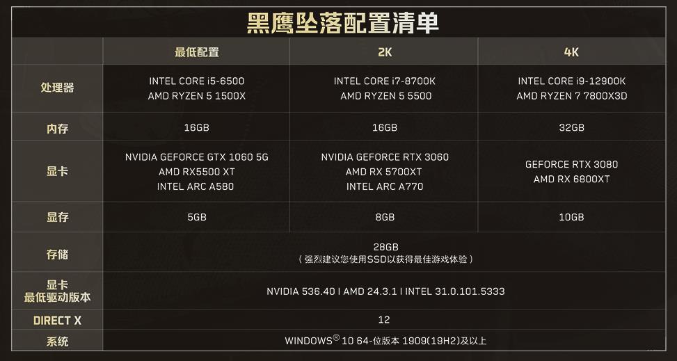 【《三角洲行动》全新战役模式“黑鹰坠落”2月21日免费上线】《三角洲行动》官方宣布,全新战役模式“黑鹰坠落”即将于2月21日10:00正式上线。该内容根据电影《黑鹰坠落》改编,玩家将在7个章节的故事中,投身于极度危险的残酷战场,迎接一系列高难度的挑战任务。“黑鹰坠落”全关卡流程可免费畅玩!此战役模式目前仅支持PC平台体验,电脑设备配置要求详见附图。