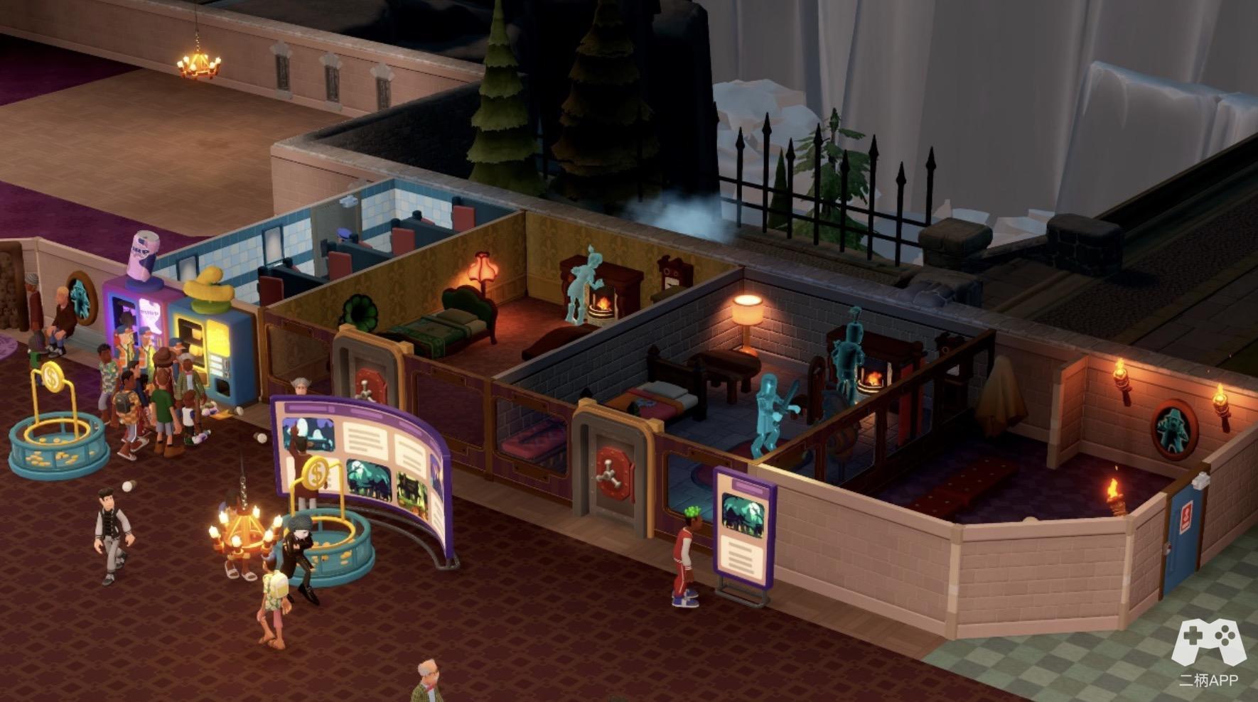游戏延续了双点系列一贯的卡通画风,但在细节表现上有了显著提升。每个博物馆的场景设计都充满了想象力,从幽深的海底世界到神秘的太空站,每个场景都独具特色。藏品的建模精致细腻,配合动态展示效果,让整个博物馆充满了生机。