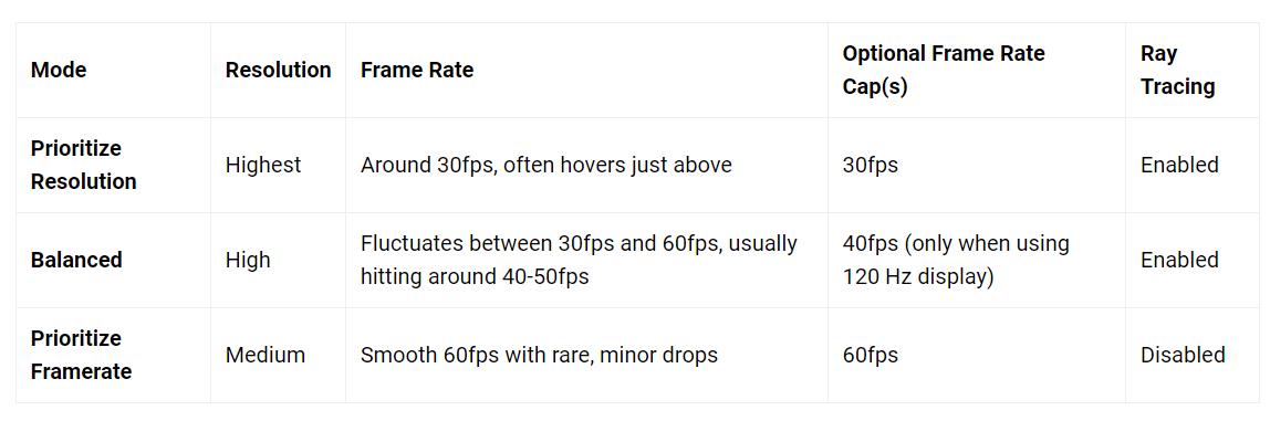 Pushsquare带来了游戏PS5和PS5 Pro上的表现情况。据其所述,游戏优化相较测试有着很大提升,但仍不完美。分辨率优先模式即便Pro上也只有30帧;平衡模式需要接受帧数的波动;帧数优先模式则可60帧体验,不过Pro上需要牺牲光追和分辨率,PS5上的画面则更加模糊(具体数据详见附图)。