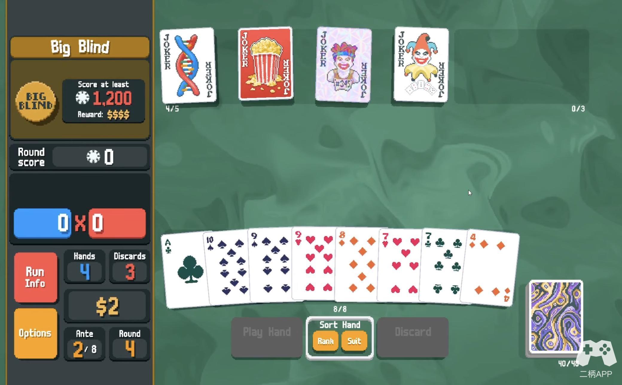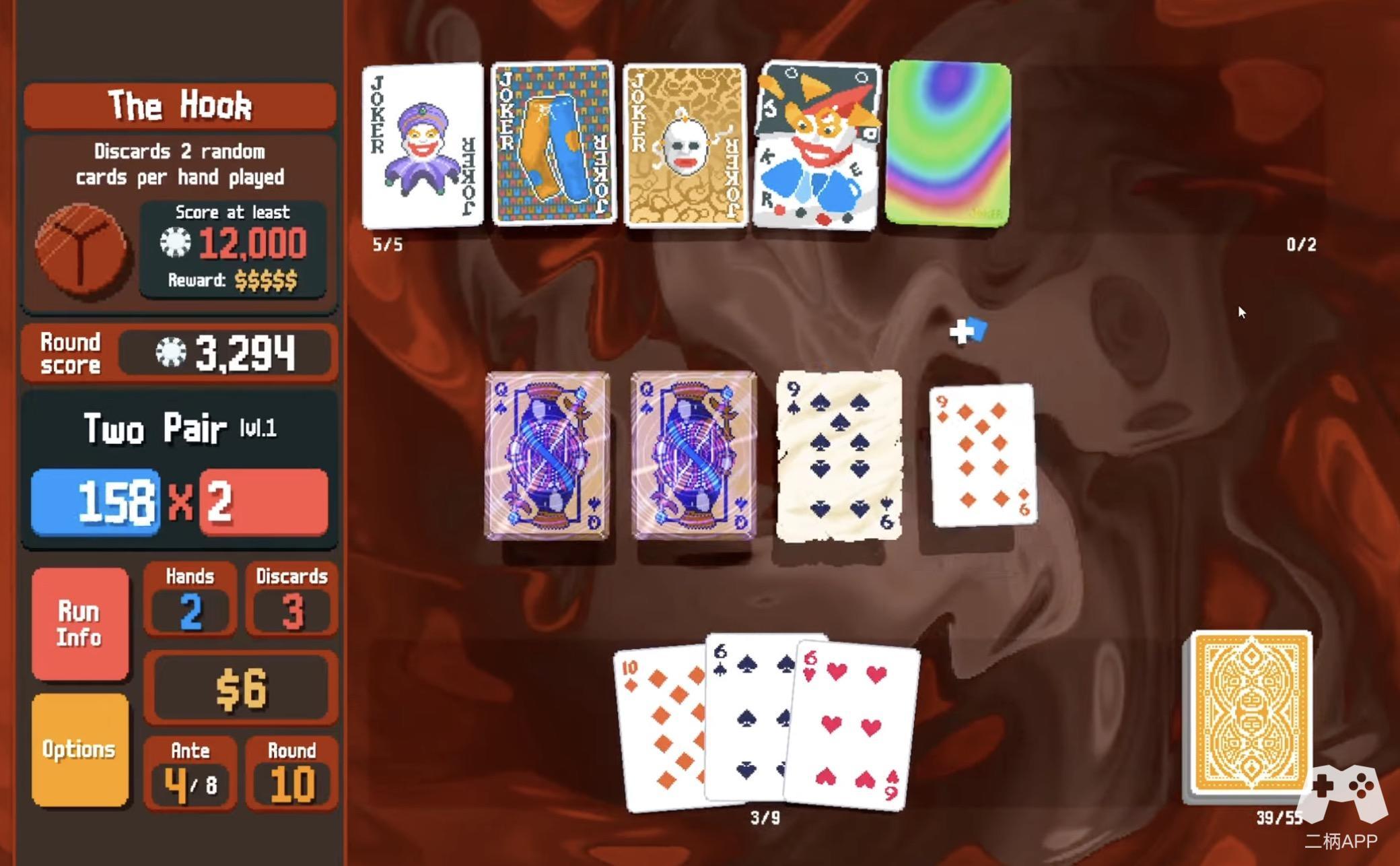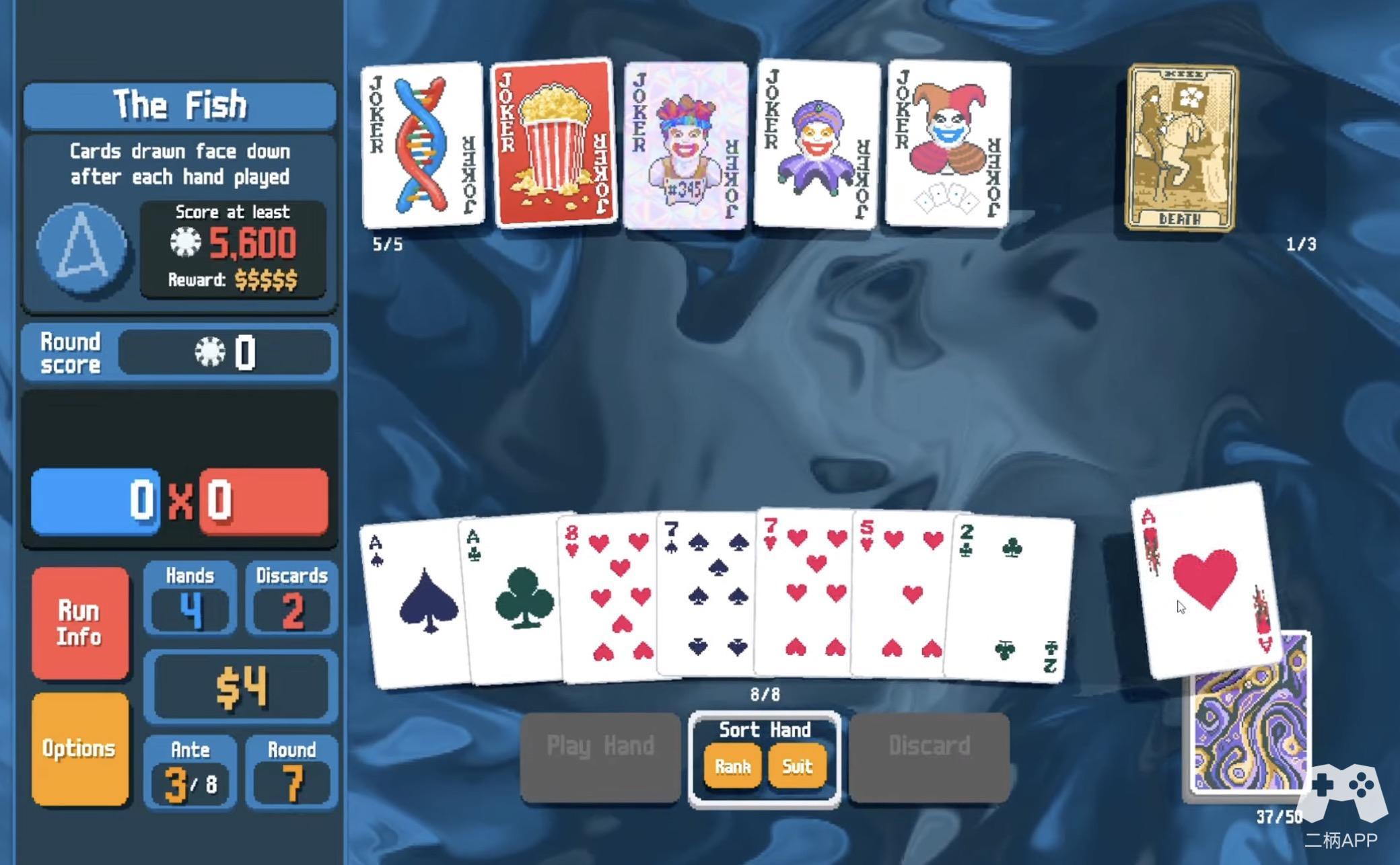 《小丑牌》的核心玩法可以用一句话概括:用扑克的规则玩Roguelike。听起来很荒谬?没错,这正是它的魅力所在。游戏的基本规则很简单——你需要通过组合扑克牌型(如对子、顺子、同花等)来击败敌人。然而,与传统扑克不同的是,你的牌组并不是固定的,而是会随着游戏进程不断变化。