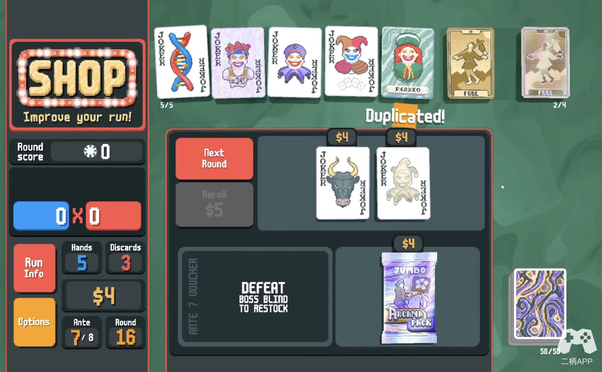 游戏的Roguelike机制还体现在它的“遗产系统”上。每当你完成一局游戏(无论成功与否),你都会获得一定的遗产点数。这些点数可以用来解锁新的小丑牌、卡牌类型或游戏模式。这种渐进式的解锁机制,既保证了新手玩家的上手难度,也为老玩家提供了持续的目标感。