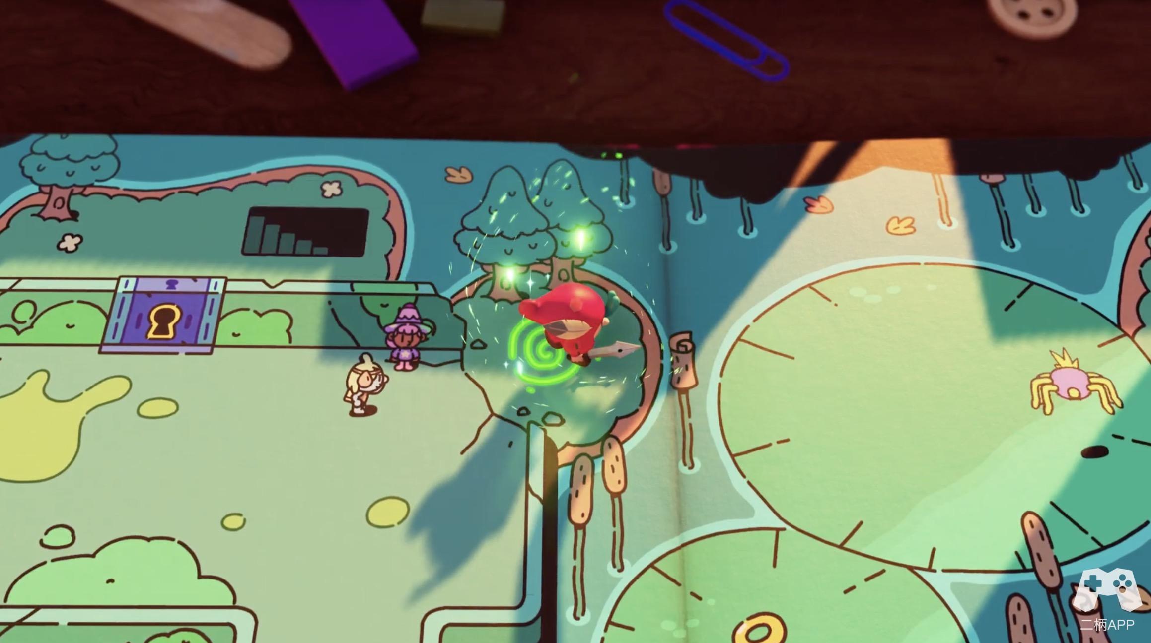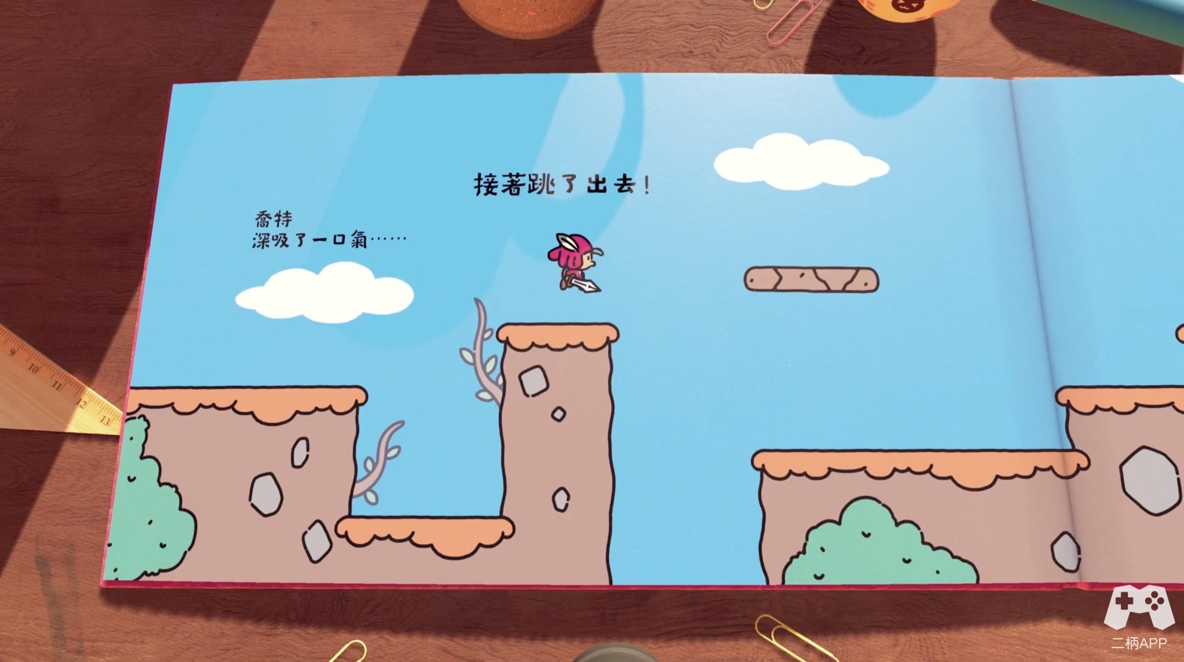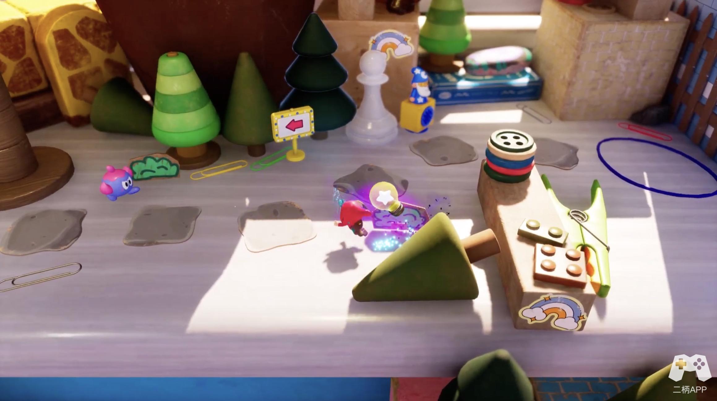 《勇敢小骑士》最引人注目的特点莫过于其独特的2D与3D切换机制。游戏的主角乔特(Jot)原本是童话书中的一个2D角色,但当反派撕裂书页、打破次元壁后,乔特发现自己可以穿梭于书页的2D世界和现实世界的3D空间之间。这种设定不仅仅是视觉上的噱头,更是游戏玩法的核心。