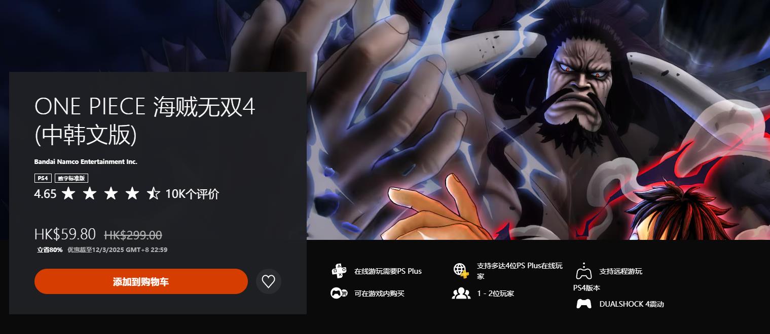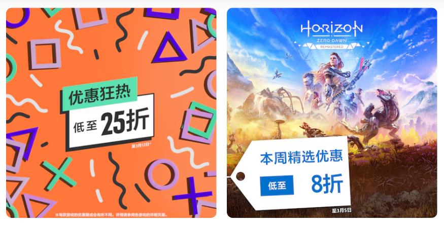 【PS商店最新活动开启:《海贼无双4》《零之曙光》重制版等作新史低】PS HK商店今日开启了新一轮的促销活动。首先是“本周精选优惠”,其中多款《地平线》游戏正在优惠中。包括首次打折的《零之曙光重制版》以及史低的《乐高地平线大冒险》等作,活动截至3月5日。
