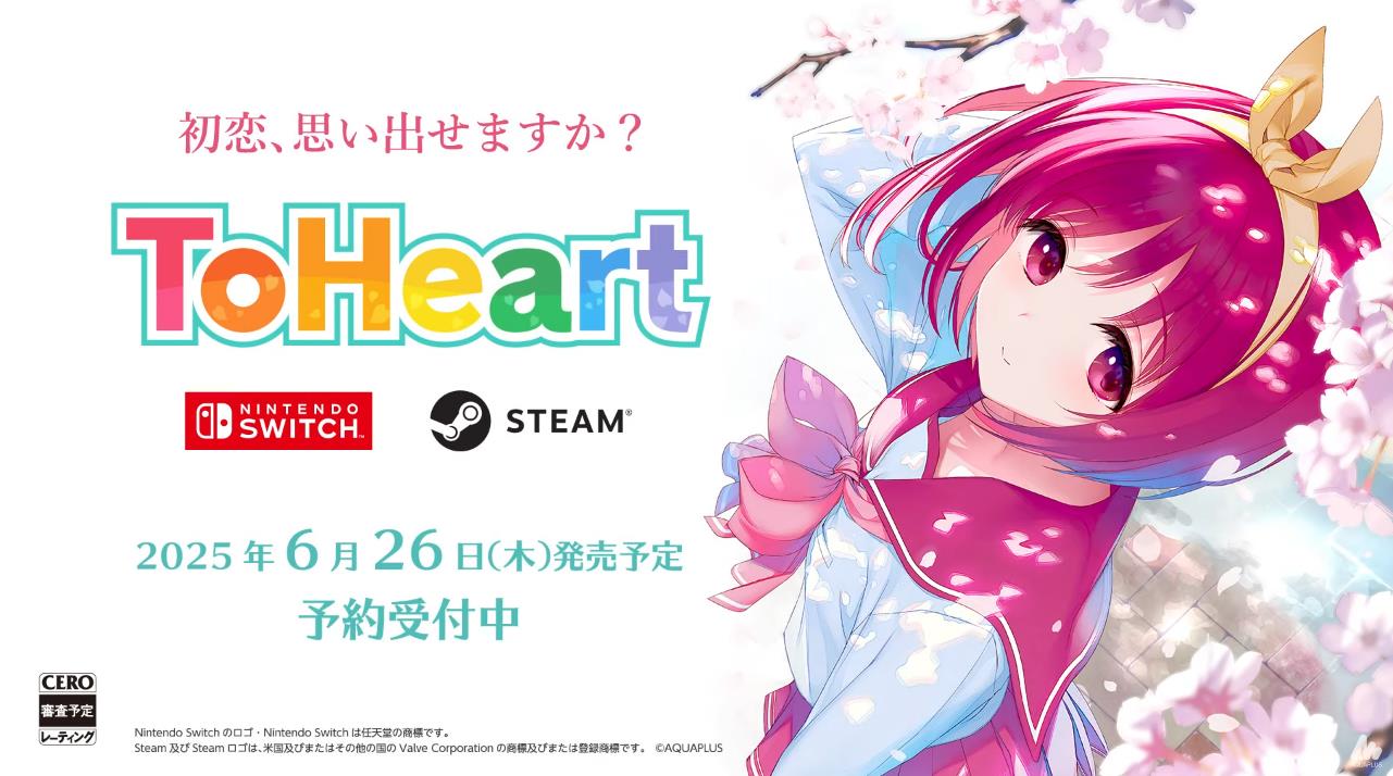 【经典恋爱游戏《ToHeart》重制版将于6月26日发售】AQUAPLUS宣布, 《ToHeart》重制版将于6月26日发售,登录平台为NS和Steam。本作一款“温暖人心的校园恋爱游戏”,玩家将作为一名极其普通的高中生,与儿时玩伴神岸明、佐藤雅史,以及初中结识的朋友长冈志保一起度过热闹的高校生活。此次重制版以全3D形式焕新归来,可自由切换经典配音或全新配音,并支持中文。游戏售价3080日元,NS版提供实体,Steam页面现已开通。