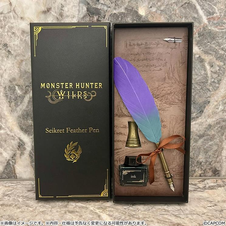 其次是CFB《怪物猎人》Vol.27手办,其中收录了新作中的锁刃龙、煌雷龙、沙海龙、缠蛙、辟兽以及猎人的坐骑鹭鹰龙,一套11800日元。此外,还有《怪物猎人:荒野》鹭鹰龙羽毛笔,售价7480日元。两款产品预计9月25日出货。