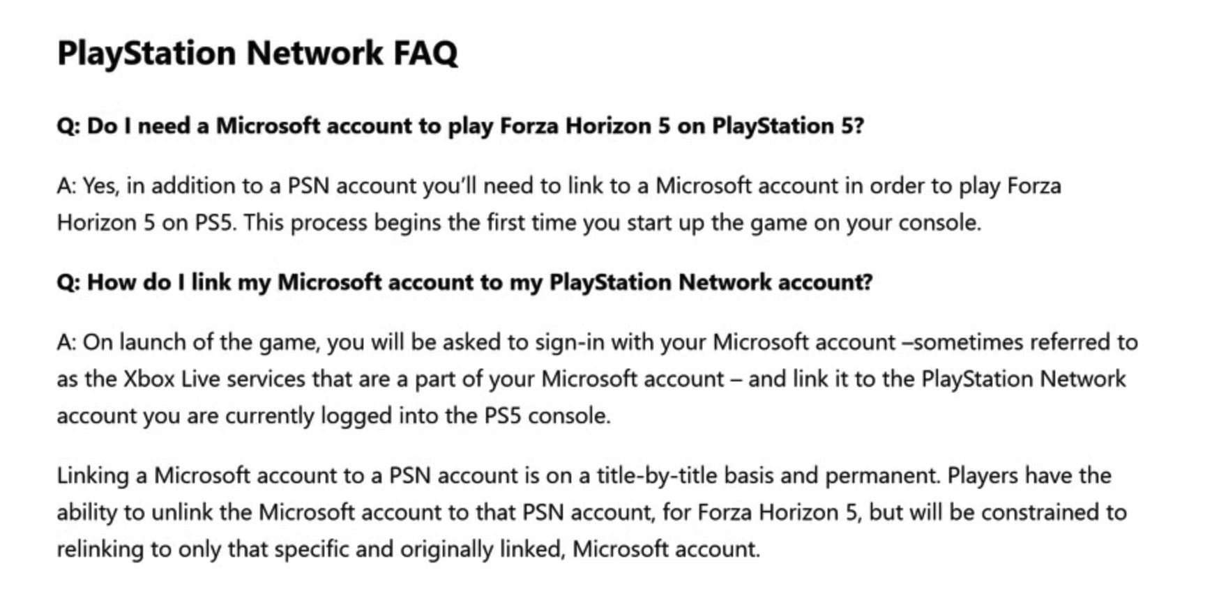 【PS5上游玩《极限竞速:地平线5》需要微软账户】 Playground 工作室网站的游戏问答中,已明确玩家除了PSN帐户外,还需要链接到微软帐户才能在PS5上玩《极限竞速:地平线5》。这并不是微软首次这么做了,之前《盗贼之海》和《我的世界》登陆PS时,也有过类似要求。