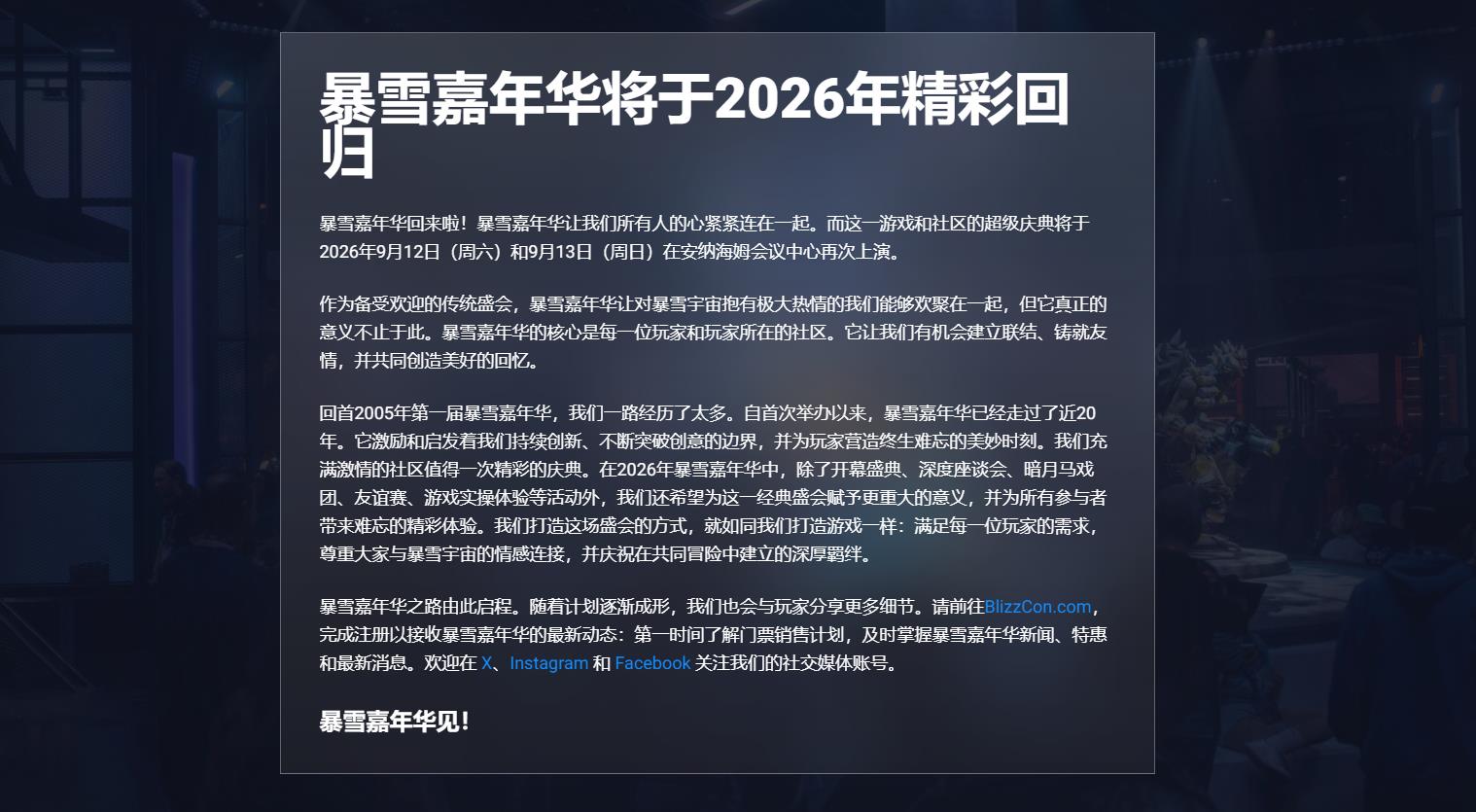 暴雪嘉年华将在2026年回归