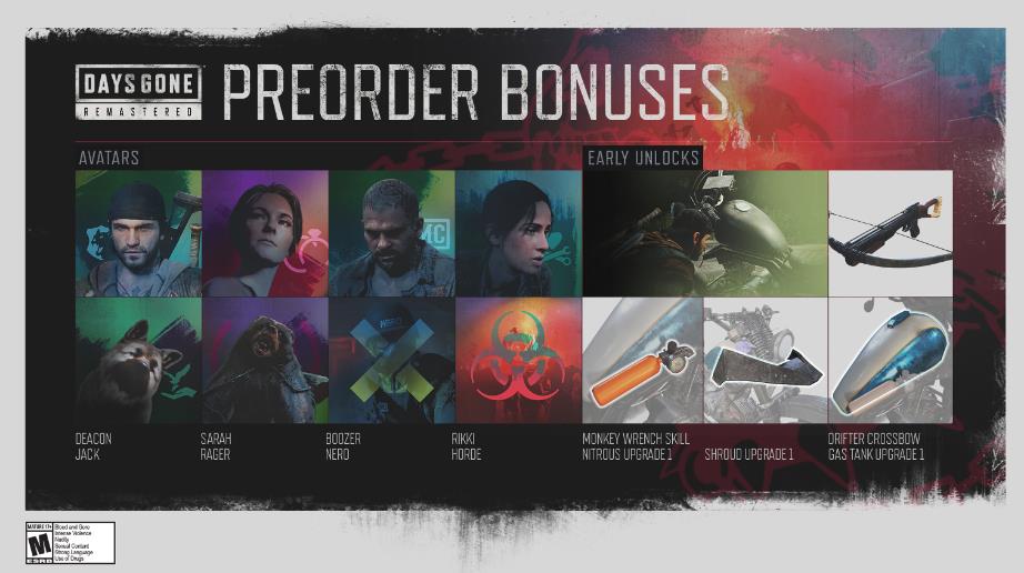 9、预约特典:提前解锁浪迹者十字弓、氮气强化、油箱强化、护罩强化、活动扳手技能,以及8个PSN虚拟形象。