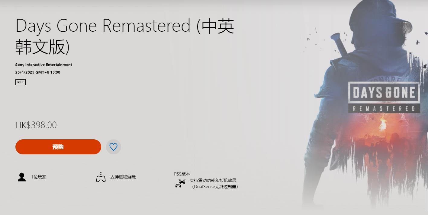 1、《往日已逝Remastered》PS HK商店中售价398HKD(升级价格90HKD)。