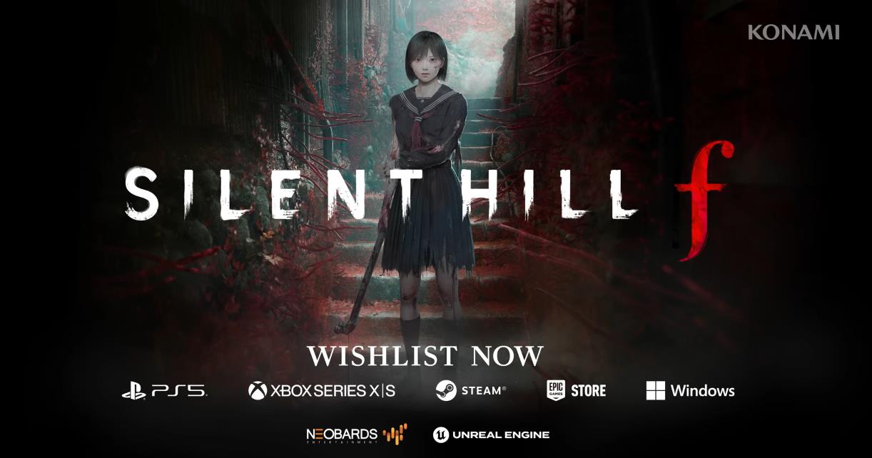【《寂静岭》系列最新作《寂静岭f》预告首曝】Konami今日公布了系列最新作《寂静岭f》的预告视频。游戏的舞台发生在位于某偏远之地的萧条乡镇•戎之丘,玩家将扮演主角深水雏子于变得面目全非的小镇中探索、解谜。为了自保,为了生存而战斗。本作由龙骑士07负责剧本,kera负责生物及角色设计。《寂静岭f》登录平台为PS5、Xbox Series、Steam、Epic商店、Windows,游戏支持中文。