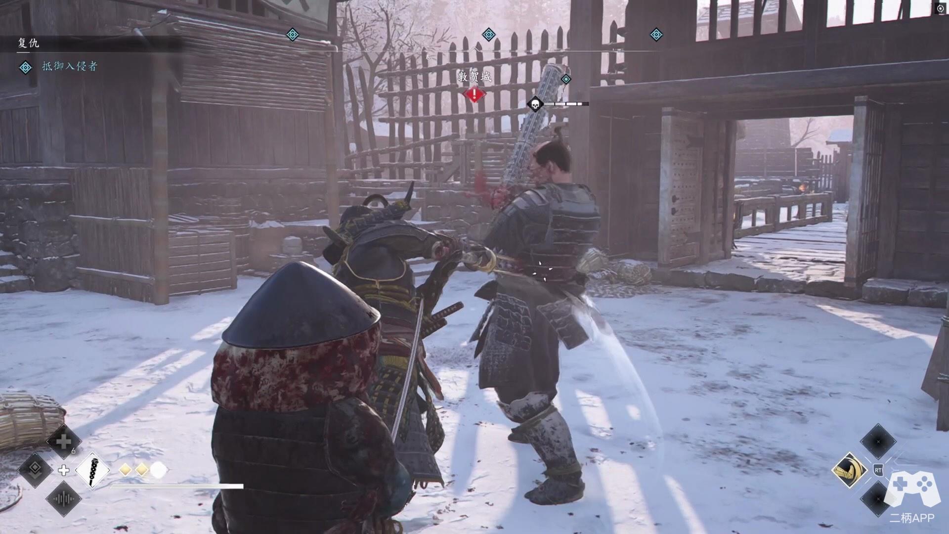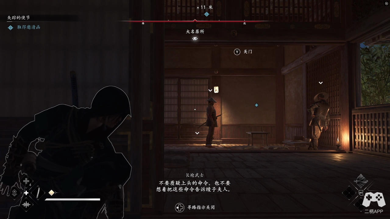 双主角在能力面板上的差异化不仅体现在战斗层面,更渗透至探索体验的每个细节。当玩家出现在敌方据点门口,士兵们会恭敬地请身为武士的弥助离开,